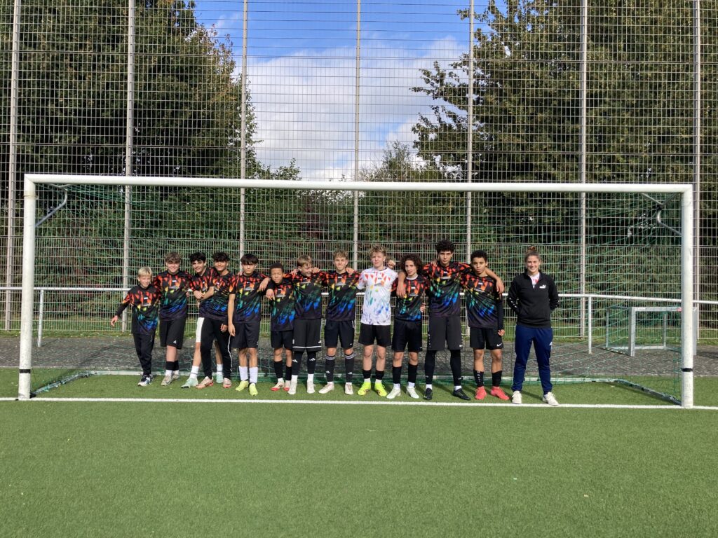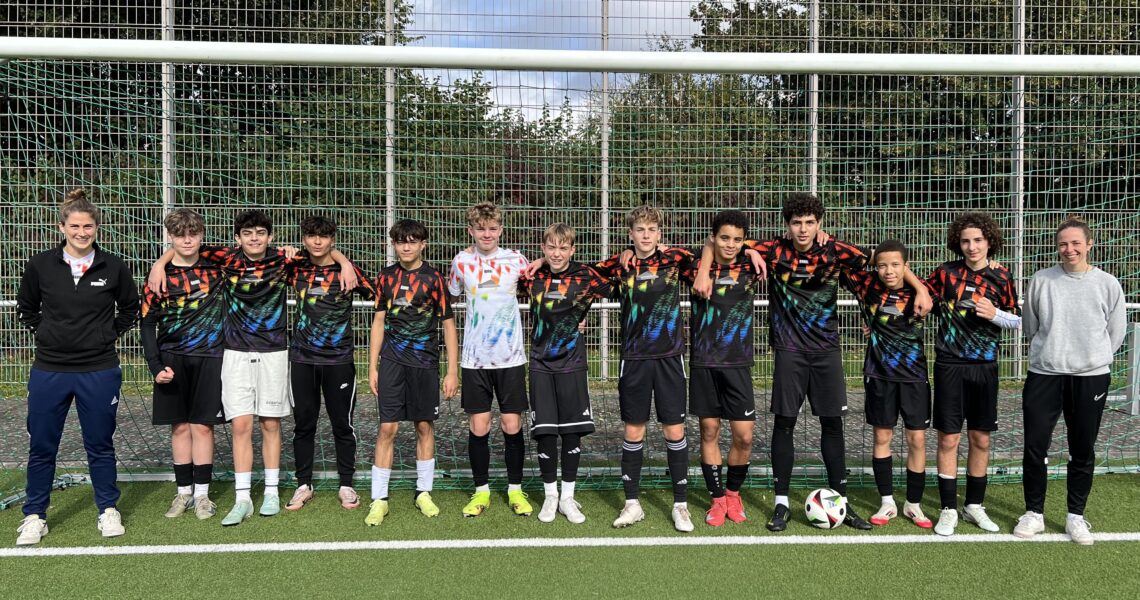 Mannschaft U15: Adriano S., Bahoz C., Ben H., Efe G., Fayaaz M. R., Loïc B., Niklas F. D., Noah L., Ömer S., Paul K., Paul C., Richmound M. (Begleitung: Hr. Hilpert)
