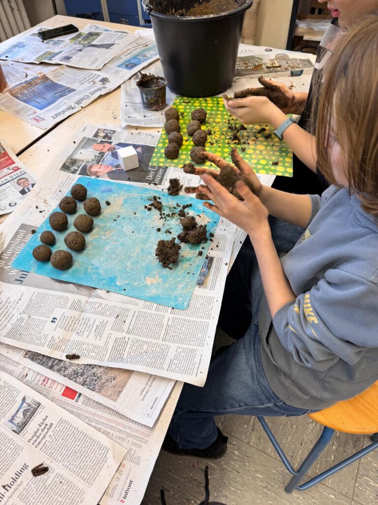 Am Mittwoch, dem 21.01.2026, hat die Karnevals-AG vom Herder-Gymnasium mit Frau Nwanneka und Frau Stern nachhaltige Samenbomben für die Karnevals-Umzüge bei den Schul- und Veedelszügen und in Dellbrück hergestellt.